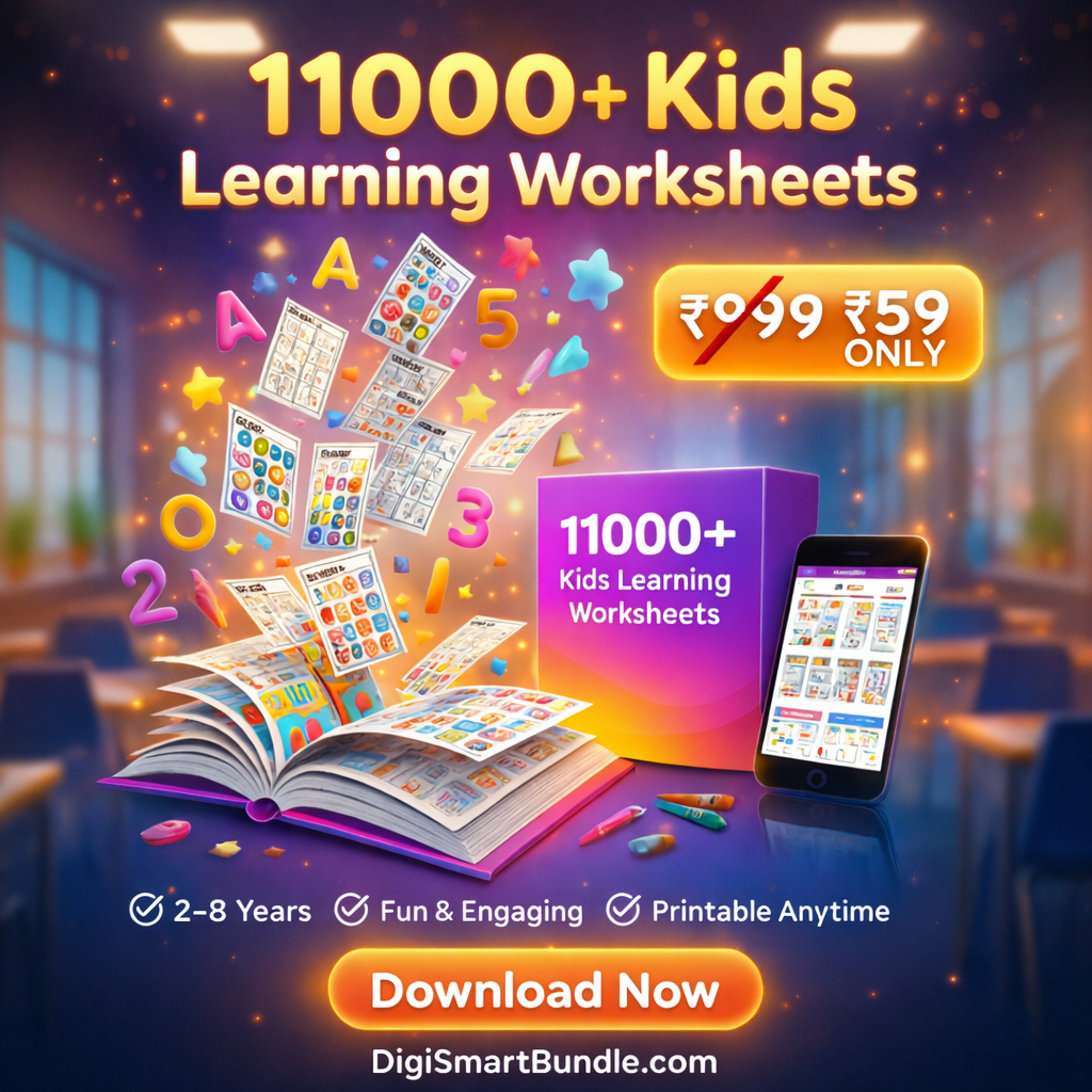 This bundle is ideal for children aged 2 to 8 years. Worksheets are organized from basic learning (alphabets, numbers, colors) to advanced skill-building activities.